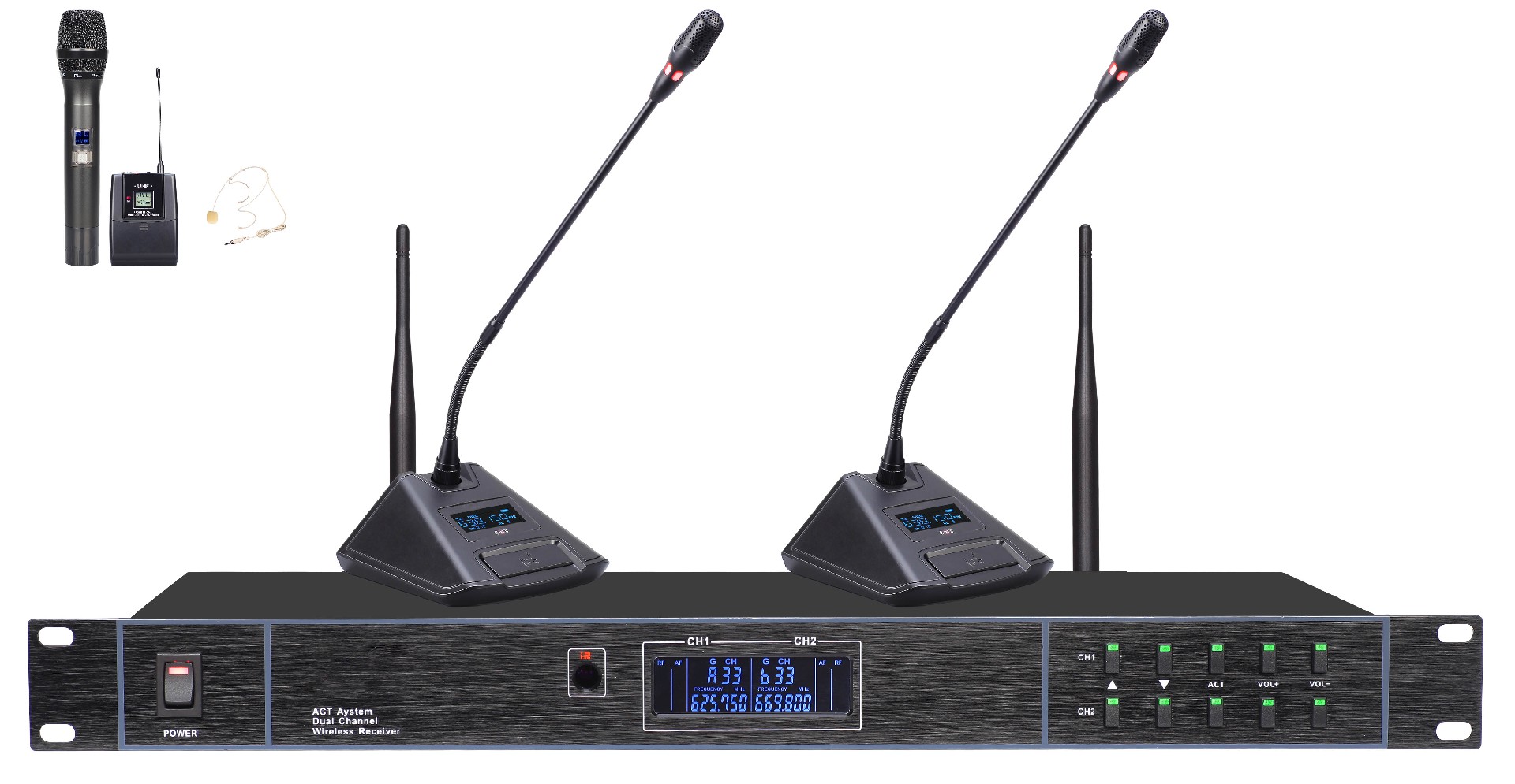 红外对频多通道无线会议麦克风。采用杂音干扰较少的UHF频段PLL相位锁定技术。采用微电脑CPU控制。全金属材质标准机箱,金属面板分别配置每信道接收机,装配LCD显示屏幕,采用电子式按键控制面板操作。主机分别提供每路平衡音频输出插座, 与混合不平衡输出,全面适应各种连接需求。会议座采用独立外观设计,高保真金属拾音头,2.5英寸液晶屏显示,作参数一览无遗,后置KEY LOCK锁频键,能有效防止按键误触带来的不便。为高级会议工程安装使用之首选。