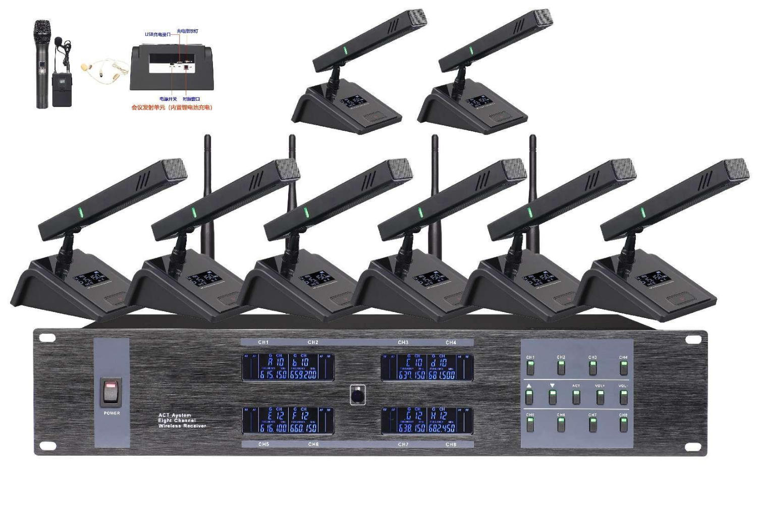 UHF无线会议一拖八(内置锂电池充···
