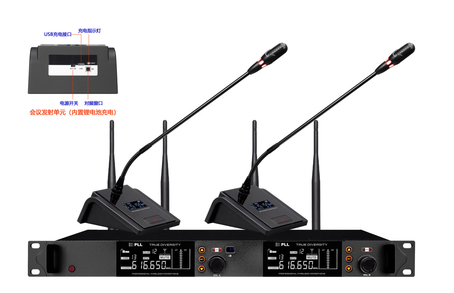 真分集UHF无线会议一拖二(内置锂···