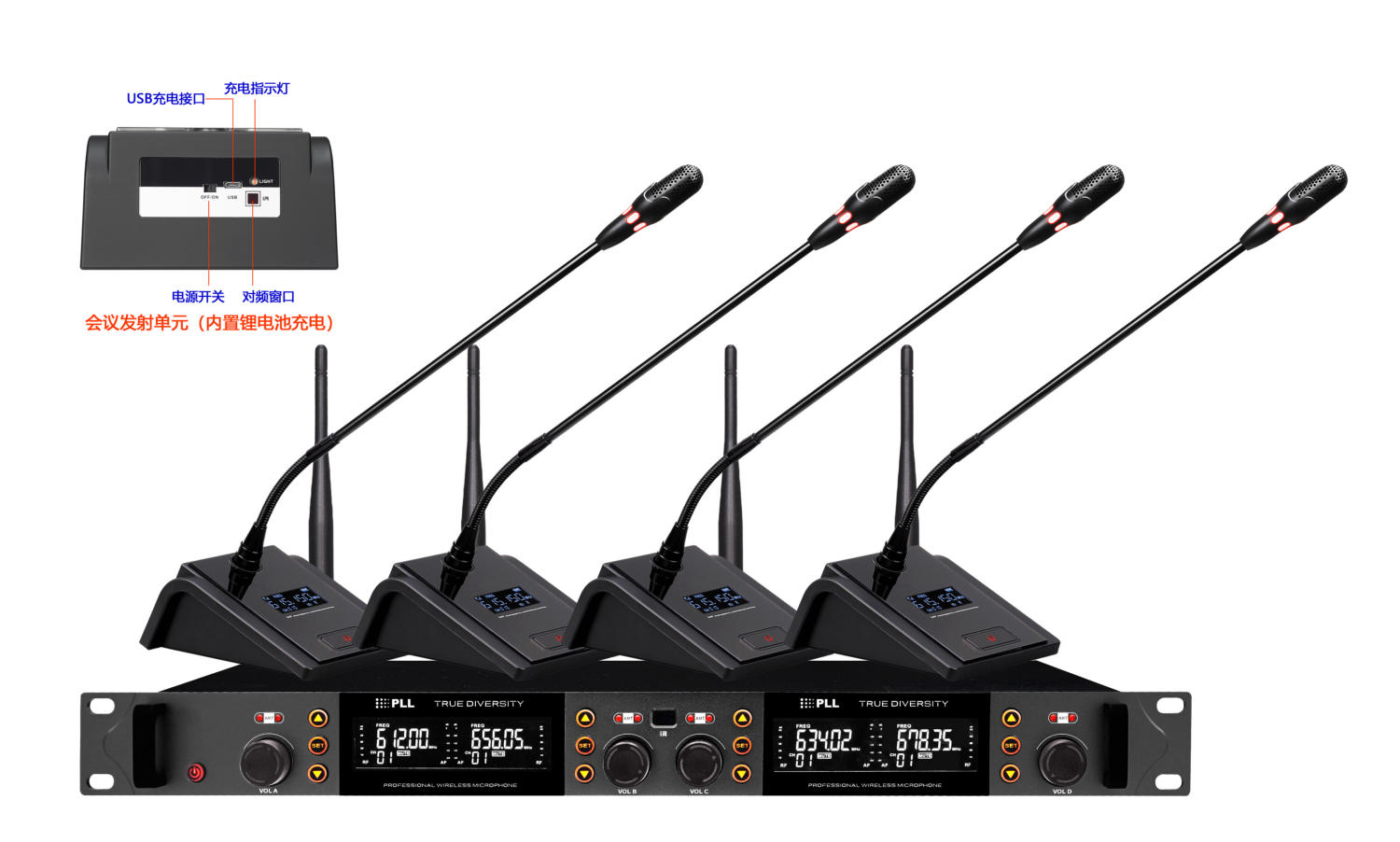 真分集UHF无线会议一拖四(内置锂···